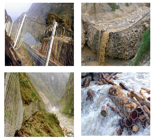 被動(dòng)防護(hù)系統(tǒng)是將以鋼絲繩網(wǎng)為主的柵欄式柔性欄石網(wǎng)設(shè)置于斜坡上相應(yīng)位置,用于攔截斜面坡上的滾落石以避免其破壞保護(hù)的對(duì)象;當(dāng)設(shè)置于泥石流區(qū)域時(shí),便可形成攔截泥石流體內(nèi)固體大顆粒的柔性格柵壩。適用于建筑設(shè)施旁有緩沖地帶的高山峻嶺,把巖崩、飛石、雪崩、泥石流攔截在建筑設(shè)施之外,避開(kāi)災(zāi)害對(duì)建筑設(shè)施的毀壞。